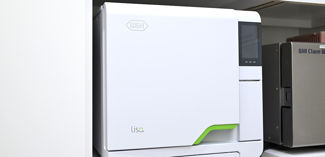 当院では、院内滅菌レベル向上のため、滅菌室、滅菌専任者をつくり、院内感染防止に努めております。患者様のお口に入るものは、うがい水をふくめ、すべて完璧に滅菌処理されたものを使用しておりますのでご安心ください。