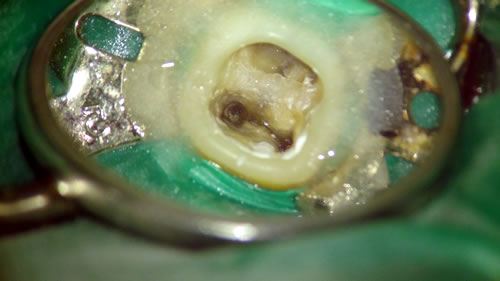 根管は、非常に小さく、暗く、湾曲しています。その中にミリ以下の汚れや、細菌感染した組織がこびりついています。